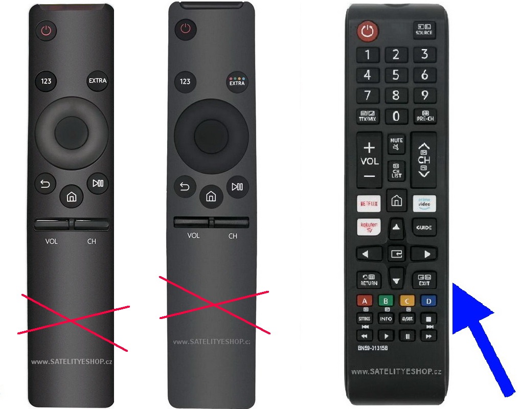 - náhrada klasického tlačítkového ovladače k TV- značený modrou šipkou