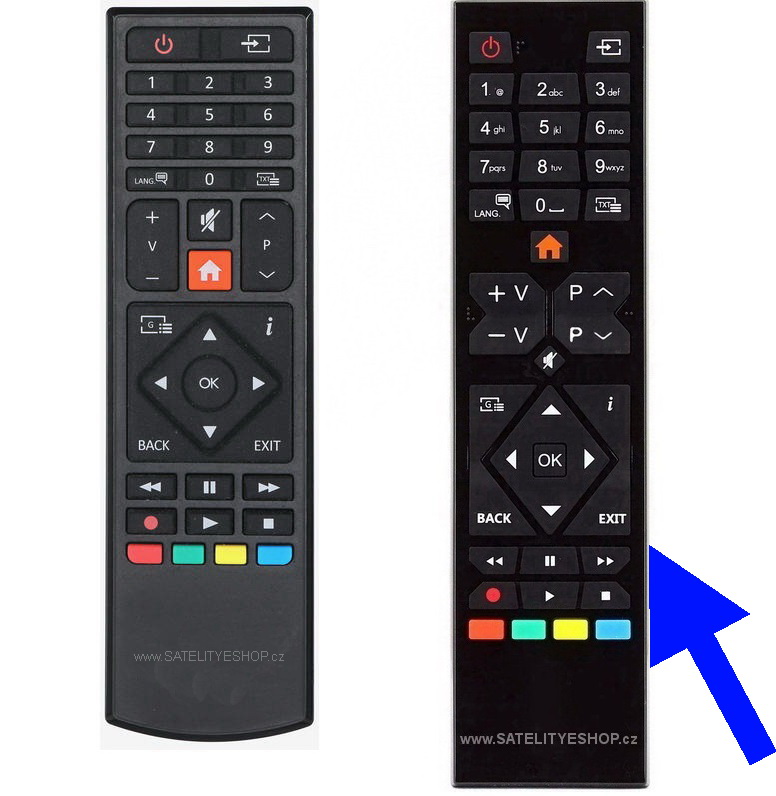 Ovladač podobnho vzhledu a stejných funkcí- označen modrou šipkou