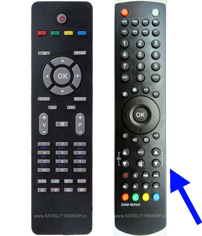 Dálkový ovladač jiného vzhledu a stejných funkcí model s šipkou
