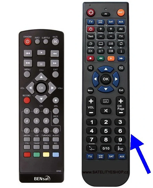 Dálkový ovladač jiného vzhledu, velké přehledné tlačítka, kvalitní zpracování- model s šipkou