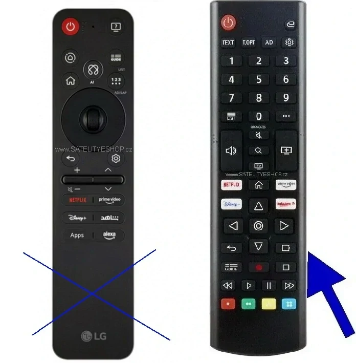 náhrada původního chytrého za běžný číselný tlačítkový ovladač TV- značený modrou šipkou
